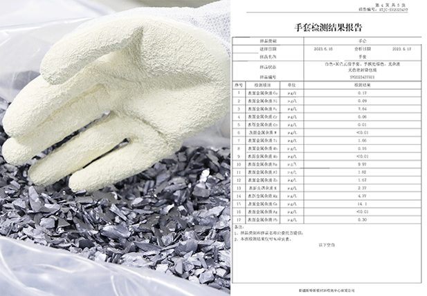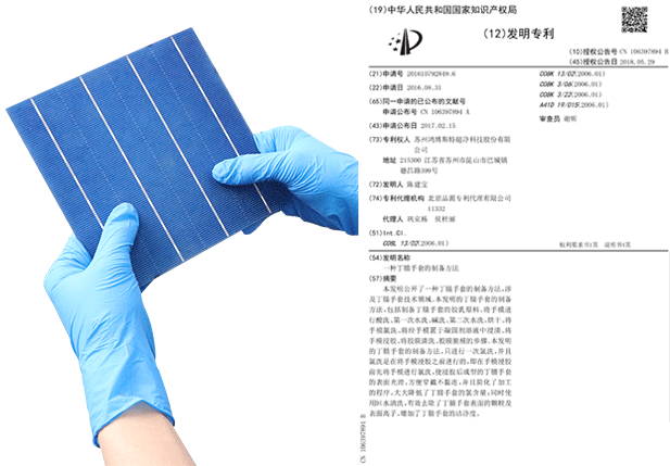 手套經(jīng)過特殊工藝處理,通過驗(yàn)證將手套放置氮?dú)夤癞?dāng)中80H,手套接觸產(chǎn)品無任何氧化情況,經(jīng)權(quán)威機(jī)構(gòu)檢測(cè)氯元素及硫元素完全符合接觸電池片標(biāo)準(zhǔn),且不會(huì)在電池片上面留下任何指印。